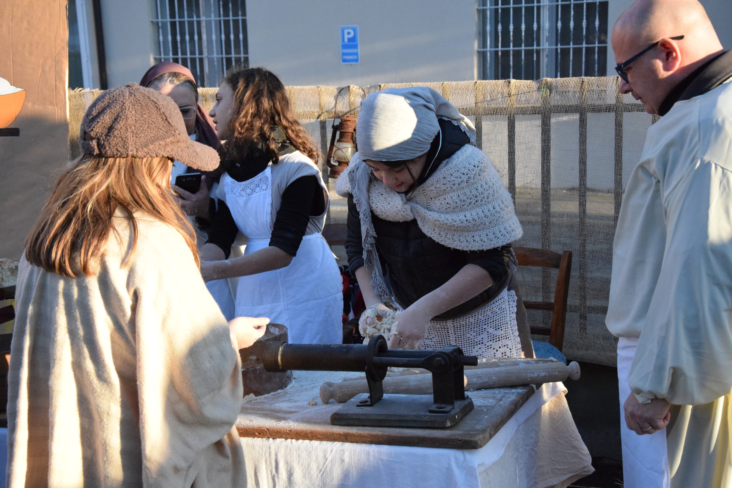 L’atmosfera magica ha preso forma con la partecipazione entusiastica di genitori e bambini delle classi quinte e della sezione cinque anni che hanno interpretato con dedizione e creatività personaggi tipici dell’epoca. Grazie al loro impegno i visitatori del presepe hanno potuto fare un vero e proprio tuffo nel passato. Tra fabbri che martellavano con maestria, vasai abili nel modellare l’argilla, locandieri accoglienti, lavandaie, sarte e fornai; ogni stand era un piccolo teatro vivente che ha catturato l’attenzione di grandi e piccini.