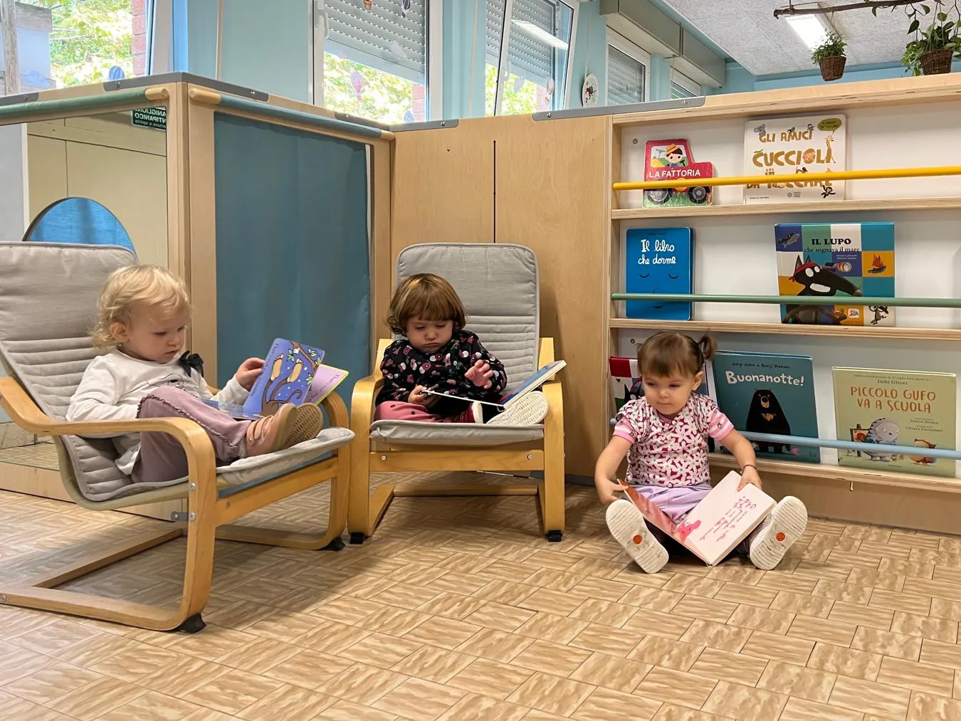 L’avvicinamento alla lingua inglese inizia già nei primi anni di età grazie alla presenza di un’insegnante proveniente dalla scuola primaria. Questa figura si dedica alla sezione nido una volta alla settimana per due ore, comunicando esclusivamente in inglese. L’integrazione della lingua inglese nel curriculum del nido non solo arricchisce il loro bagaglio linguistico, ma promuove anche una maggiore apertura culturale. Attraverso giochi, canzoni e attività creative, i bambini non solo assorbono ed imparano a riprodurre alcuni semplici suoni, ma sviluppano anche una consapevolezza interculturale.
